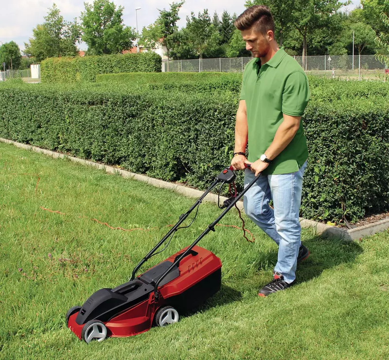 The electric lawn mower GC-EM 1000/30 is a high-quality, very powerful device for each ambitious amateur gardener, meeting the highest expectations in mowing smaller lawns. Its powerful 1,000 Watt carbon-power-motor delivers excellent cutting results even in dense vegetation due to its high torque. Due to its 3-step axial cutting height adjustment, the cutting height can be preselected simply and individually. The GC-EM 1000/30 is recommended for lawns up to 300 m². The supply cable is protected against wear by a strain relief. The extensive wheels save the lawn and facilitate work in difficult terrain. The 25 liter grass collector and the robust housing consist of high-quality, shock-resistant plastics for regular application and long duration. The mower is equipped with a practical integrated handle for simple transport and has a folding guide rail for space-saving storage.