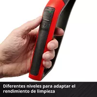 El limpiador de suelos duros inalámbrico CLEANEXXO de Einhell es un ayudante diligente para los trabajos de limpieza en la casa como sustituto del trapeado y, por lo tanto, el complemento perfecto para la aspiradora. Como miembro de la familia Power X-Change, el limpiador de suelos duros puede combinarse con todas las baterías y cargadores de la familia del sistema. Gracias al sistema de batería intercambiable, el limpiador ofrece una duración ilimitado sin cables: Si una batería está vacía, simplemente se puede insertar la siguiente y seguir limpiando. El suministro de agua o la cantidad de agua del limpiador de suelos duros se controla directamente en la empuñadura con ayuda de un disparador. En combinación con los modos estándar y BOOST, que influyen en la velocidad de rotación del rodillo, el limpiador elimina tanto la suciedad y el polvo normales como las manchas complicadas de eliminar. En el modo BOOST, la cantidad de agua también aumenta al accionar el disparador. Si no se suministra agua, el rodillo solo puede absorber la humedad del suelo y, por lo tanto, secar el suelo. El suministro de agua del depósito de agua fresca de 400 ml humedece el cepillo para limpiar los suelos. El agua se absorbe de nuevo a través de un mecanismo especial y se recoge en el depósito de aguas sucias (300 ml). Ambos depósitos se pueden extraer completamente del equipo para el llenado, vaciado y limpieza. Gracias a su diseño estrecho y al alojamiento de batería plegable, el limpiador de suelos duros con batería alcanza fácilmente esquinas, bordes y lugares estrechos. El limpiador es agradable de manejar gracias al asa ergonómica con agarre suave y función Always-On. El CLEANEXXO se almacena de forma óptima en la estación de aparcamiento/limpieza suministrada. Gracias a la función Self-Standing se mantiene erguido. Mediante la función de autolimpieza y las nervaduras de limpieza especiales en el fondo de la estación de aparcamiento, el cepillo cilíndrico se limpia pulsando el interruptor BOOST durante 3 segundos. Con la ayuda de la herramienta de limpieza suministrada, también se puede limpiar la boquilla o liberar el rodillo, por ejemplo, de pelo. El limpiador de suelos duros y la estación de limpieza son fáciles de transportar gracias al asa de transporte integrada. El cepillo cilíndrico es adecuado para la limpieza de diversos suelos como parqué, laminado, PVC, corcho, linóleo o incluso superficies más gruesas como suelos de piedra y baldosas de piedra. El cepillo cilíndrico se puede cambiar sin herramientas y se puede lavar a máquina. Un rodillo de repuesto es adquirible por separado como accesorio. El limpiador de suelos duros con batería CLEANEXXO se envía sin batería ni cargador.